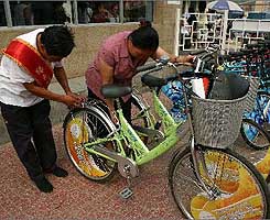 奧運會前,北京市將建立200個自行車租賃點,推行自行車全城聯(lián)網(wǎng)、異地存取的租賃業(yè)務,投入的公共自行車將達50000輛!粌H僅因為奧運會,我們才需要便捷的城市公共交通,也不僅僅是北京,才需要改善城市公共交通![詳情] | |