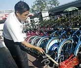 前不久,北京航空航天大學在校內(nèi)設立了自行車租賃點,拿出了100多輛新車供師生員工在校內(nèi)免費使用,到現(xiàn)在只剩下了50多輛,自行車租賃點也在學生放暑假這段時間內(nèi)取消。學校一位自行車管理員告訴記者,目前很多新車已損壞嚴重。[詳情] | |