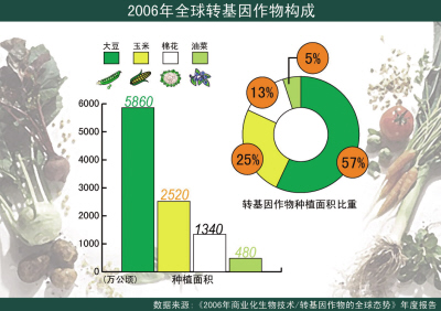 2006年全球轉(zhuǎn)基因作物的種植面積由1996年的170萬(wàn)公頃發(fā)展到1.02億公頃,增長(zhǎng)了60多倍,種植的國(guó)家達(dá)22個(gè),還有29個(gè)國(guó)家批準(zhǔn)轉(zhuǎn)基因作物作為食品或飼料進(jìn)口,種植的農(nóng)戶首次超過(guò)1000萬(wàn),90%的受益者是發(fā)展中國(guó)家的貧困農(nóng)民。最可喜的是,因種植轉(zhuǎn)基因作物10年間累計(jì)減少使用殺蟲(chóng)劑