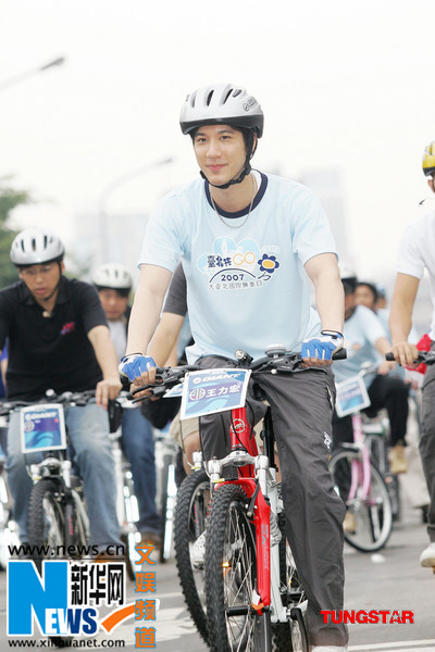 9月15日上午8時,藝人王力宏出席國際無車日活動,并與現(xiàn)場一萬兩千名參與者一起騎腳踏車。