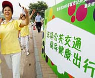 9月16日至22日,首屆中國城市公交周及無車日活動在國內(nèi)108個城市同時舉行。活動期間,各城市人民政府領(lǐng)導(dǎo)將帶頭參與;城市至少實施一項長效措施,鼓勵市民采取綠色交通方式出行;在活動前后以及活動期間,城市要對有關(guān)的各項環(huán)境指標(biāo)和交通技術(shù)指標(biāo)進行監(jiān)測。