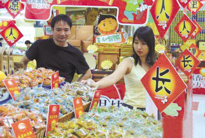 “我們把月餅放在最醒目的位置銷售,可依然少人問津!毖巯,距離中秋節(jié)還有不到10天的時(shí)間,北京月餅銷售市場(chǎng)的戰(zhàn)爭(zhēng)也進(jìn)入了白熱化階段。9月16日,《市場(chǎng)報(bào)》記者走訪華聯(lián)、華堂、家樂福等多家商場(chǎng)和超市,發(fā)現(xiàn)今年月餅的銷售情況非但不火爆,而且并不樂觀。 記者首先來(lái)到華堂商場(chǎng)十里堡店,發(fā)現(xiàn)正門口的區(qū)域已經(jīng)被擺放得整整齊齊、包裝精致的月餅禮盒所占據(jù)。大三元、宮頤府、稻香村、華美、仿膳、廣州酒家……