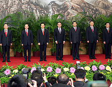 | 胡錦濤等十七屆中央政治局常委同中外記者見面 |
