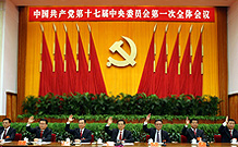 中國共產(chǎn)黨第十七屆中央委員會第一次全體會議公報 (2007年10月22日中國共產(chǎn)黨第十七屆中央委員會第一次全體會議通過) 中國共產(chǎn)黨第十七屆中央委員會第一次全體會議,于2007年10月22日在北京舉行。 出席會議的有中央委員204人,候補(bǔ)中央委員l66人。中央紀(jì)律檢查委員會委員列席會議。 胡錦濤同志主持會議并作了重要講話。[詳情] |
