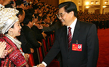 | 胡錦濤會見解放軍和武警部隊(duì)出席黨的十七大全體代表 |