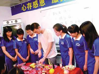 會(huì)做西餐,能講外語(yǔ),深圳涉外管家培訓(xùn)班的“洋保姆”們?cè)谏险{(diào)酒課。 | 隨著中國(guó)經(jīng)濟(jì)的迅速發(fā)展,漢語(yǔ)受到許多國(guó)家的重視。加上遍布世界的華人家庭的需要,高素質(zhì)的中國(guó)保姆開始走俏。受過專業(yè)培訓(xùn)的涉外保姆走向海外,在家政業(yè)大展拳腳。