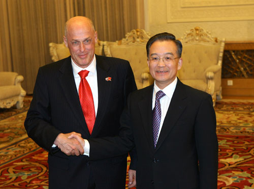 溫家寶說,中美經貿合作是世界上最大的發(fā)展中國家和最大的發(fā)達國家之間的合作,其作用和影響極大。在經濟全球化背景下,中美利益交織融合從未像今天這樣緊密,相互依存程度不斷加深。中美經貿關系的平穩(wěn)發(fā)展不僅惠及兩國人民,而且對全球經濟的發(fā)展也有重大意義。中美應攜手應對全球化帶來的機遇和挑戰(zhàn),加強互利合作,實現共同發(fā)展,推動經濟全球化朝著均衡、普惠、共贏方向發(fā)展。