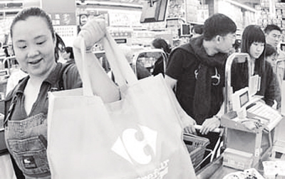 | “環(huán)保購物袋斷貨很長時間了,聽說已經(jīng)去進貨了,什么時候能來就不知道了。”北京沃爾瑪超市萬達店的工作人員表示。12月12日,《市場報》記者來到北京沃爾瑪超市萬達店,從進門處到收款臺都沒有看到關于推廣環(huán)保購物袋的標識,也沒有見到環(huán)保購物袋的出售點。在收款臺,《市場報》記者主動提出想使用環(huán)保購物袋時,收銀員給出了上述答復。而去年率先推廣環(huán)保購物袋的家樂福北京方圓店此前已不再銷售環(huán)保購物袋。 在超市出口處,《市場報》記者對幾位消費者進行了采訪。在萬達廣場一家公司工作的楊小姐表示,她幾乎每天都會來這里購物,但是每次也只是買些吃的,體積不大,用環(huán)保購物袋既浪費又麻煩,所以她一直都使用超市提供的免費塑料袋。而另一位姓馬的阿姨則表示,每次都買一個環(huán)保袋裝東西太不合適,但是不買就還要帶上以前買的那個,十分不方便,有時候還會忘,干脆就直接用塑料袋好了,反正大家都在用。 隨后,《市場報》記者來到家樂福超市靜安莊店。家樂福超市為推廣環(huán)保理念,從去年12月就開始鼓勵消費者使用環(huán)保購物袋,并專門為消費者開辟了綠色通道,只要是自帶購物袋或者使用環(huán)保購物袋都可以通過綠色通道快速結(jié)賬。 但是,《市場報》記者在現(xiàn)場發(fā)現(xiàn),超市雖然保留了26號到29號綠色通道,但是4個綠色通道基本處于閑置狀態(tài),并沒有收銀員看管。《市場報》記者在綠色通道旁等待了近半個小時,也沒有發(fā)現(xiàn)一位消費者使用環(huán)保購物袋到這里來結(jié)賬。綠色通道基本上成了“無購物通道”,而其他結(jié)賬通道則排起了長隊,收銀員忙得不可開交。一位工作人員說:“超市針對使用環(huán)保購物袋的顧客專門開通了綠色通道,但是效果甚微,顧客買東西一般都選用塑料袋,所以綠色通道也一直閑著! 據(jù)了解,目前家樂福開通綠色通道面臨兩難的窘境,在消費者購物的高峰期,超市只能把綠色通道暫時關閉,免得“添堵”;而在開放時又需要配備專門的人員看管,所以目前家樂福環(huán)保購物袋的推廣停滯不前。另外,《市場報》記者向家樂福前臺的服務員了解到,雖然一個環(huán)保購物袋只需要1元,但是現(xiàn)在已經(jīng)無人問津了。 《市場報》記者隨機詢問幾位顧客知不知道家樂福超市推出的環(huán)保購物袋,他們都說沒有注意到;當問到是否愿意使用環(huán)保購物袋時,一位顧客說:“環(huán)保購物袋使用起來沒有塑料袋方便,生食熟食放在一起也不衛(wèi)生,而且還要收費! 下午3點30分,《市場報》記者來到北京宜家家居,這里是京城首家推行塑料袋收費的賣場。在出口處的收款臺,記者看到,基本上每個顧客都會選擇購買一個塑料袋裝東西,但是也有一些東西較少或購買大件商品的顧客徑直把東西拿在手里就走了;同時,也有個別的顧客是自己帶著購物袋前來的。有趣的是,一位自己攜帶購物袋的阿姨表示,她的這個袋子就是在沃爾瑪購物時買的,當時一共買了兩個,現(xiàn)在出去買菜什么的都拎著,現(xiàn)在又帶到了宜家,挺方便的。工作人員表示,中號黃色塑料袋每個5毛錢,大號塑料袋每個收取1元錢。質(zhì)地厚實一些的那種藍色購物袋,售價3.5元/個,希望通過收費的方式倡導消費者能自己帶著購物袋前來購物。 據(jù)了解,超市在高峰日的客流量是2萬人左右,每人平均使用2到3個塑料袋,每天至少要用掉5萬到6萬個。但是在8月5日集中進行環(huán)保購物袋宣傳活動的沃爾瑪知春路超市,當天也僅賣出100多個。推廣不利、乏人問津,環(huán)保購物袋的推廣看來還任重道遠。 |