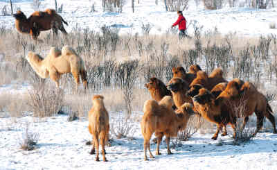 近幾年,新疆阿勒泰地區(qū)哈薩克族牧民中興起經(jīng)營(yíng)駱駝奶的熱潮,生意十分紅火。圖為布爾津縣窩依莫克鄉(xiāng)哈臺(tái)村哈薩克族牧民在趕駱駝。
