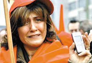 16日,德國波鴻諾基亞工廠的抗議現(xiàn)場,一位面臨失業(yè)的諾基亞女員工禁不住流下眼淚。 | 政治家公開批評