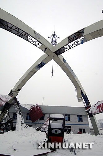這是因大雪坍塌的安徽省舒城縣南港鎮(zhèn)星球加油站(1月22日攝)。