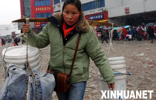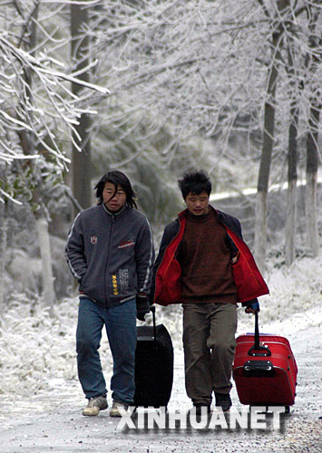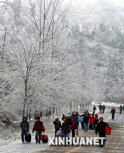 當(dāng)日,貴州大部分地區(qū)的凝凍天氣仍在持續(xù)。省內(nèi)主要公路干線均因凝凍天氣關(guān)閉,大量旅客選擇鐵路出行。從外省乘火車返鄉(xiāng)的部分旅客,因公路封閉無法轉(zhuǎn)乘汽車,不得已選擇步行回家。
