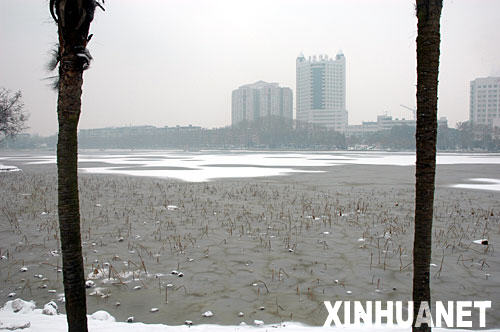 | 這是被冰雪覆蓋的武漢東湖湖面(1月27日攝)。