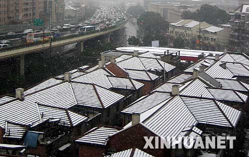 1月28日,上海城區(qū)的屋頂被白雪覆蓋。