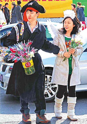 當(dāng)日的北京西單,到處都是年輕人,到處都是浪漫的故事。一對(duì)戀人吸引了路人的目光。田園/攝