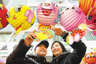 傳統(tǒng)節(jié)日元宵節(jié)來臨之際,安徽省淮北市街頭,五彩繽紛的花燈十分俏銷,市民們紛紛選購(gòu)花燈迎接元宵節(jié)。圖為二月十八日,兩位姑娘在挑選自己喜愛的卡通燈。