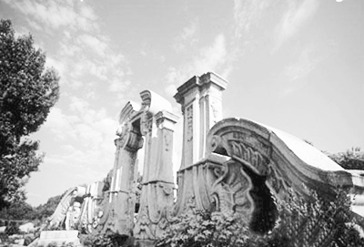 | 殘?jiān)珨啾诘膱A明園遺址(大水法) |