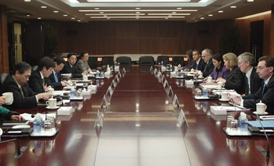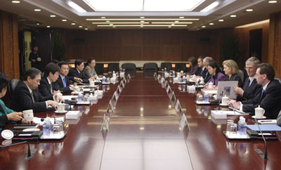 3月20日上午,商務部長陳德銘在京與來訪的美國貿(mào)易代表施瓦布舉行會談。雙方就推動WTO多哈回合談判及中美雙邊經(jīng)貿(mào)關系等問題深入交換了意見。