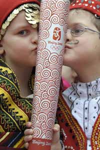 北京奧運(yùn)會(huì)火炬于4月1日抵達(dá)阿拉木圖