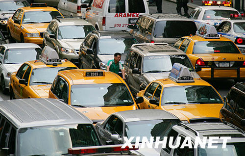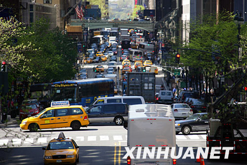 這是2007年5月31日拍攝的車輛擁堵在美國(guó)紐約曼哈頓42街的資料照片。
