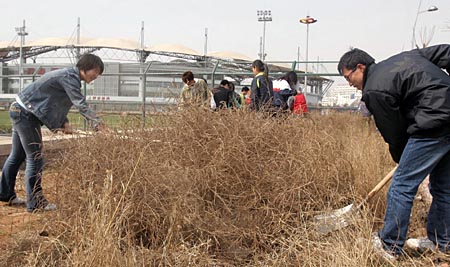 近日,河北秦皇島市白塔嶺街道辦事處的干部、職工以及秦皇島各高校的1500余名奧運環(huán)保志愿者,在秦皇島奧體中心清理整治周邊環(huán)境,以優(yōu)美的環(huán)境迎接奧運會。
