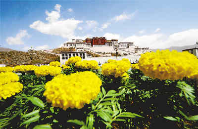 4月26日,西藏自治區(qū)拉薩市布達拉宮前花團錦簇。拉薩市園林部門在布達拉宮廣場及其周圍擺設或種植成千上萬株鮮花,迎接北京奧運會倒計時100天和“五一”勞動節(jié)。