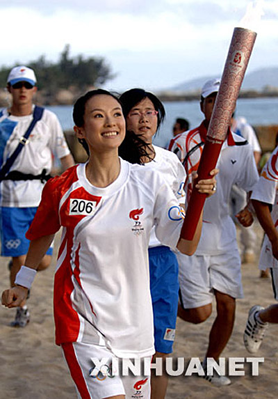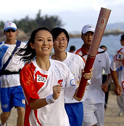 5月4日,火炬手章子怡在進(jìn)行傳遞。