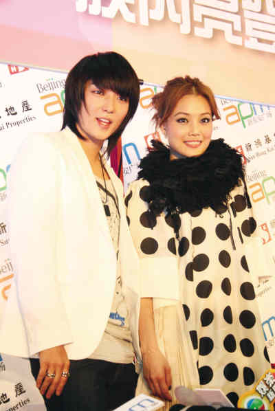 韓國巨星李準(zhǔn)基和英皇一姐容祖兒在“北京apm新潮一族閃亮登場(chǎng)”活動(dòng)現(xiàn)場(chǎng)。 | 日前,北京新東安有限公司正式宣布,位于北京金街王府井大街的百年老字號(hào)——新東安商場(chǎng)更名為“北京apm”(過渡性名稱為新東安廣場(chǎng)),同時(shí)推出了代表商場(chǎng)新形象的新潮一族卡通人物。在“活出apm,時(shí)尚全天候——北京apm新潮一族閃亮登場(chǎng)”活動(dòng)中,北京apm商場(chǎng)管理層解釋了新名稱“北京apm”的含義,“apm”意為“am(早上)”到“pm(晚上)”,意味著北京apm將適當(dāng)延長營業(yè)時(shí)間,加重夜店的比重,以年輕時(shí)尚為主線,吸引更多的北京19至35歲的年輕消費(fèi)群。
