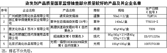 抽查結(jié)果表明,一是此次抽查的染劑pH值、苯二胺、鉛、汞、砷等直接涉及人體健康安全的檢測項目全部合格;二是市場占有率較高的大中型企業(yè)的產(chǎn)品質(zhì)量穩(wěn)定,產(chǎn)品實物質(zhì)量抽樣合格率為100%。