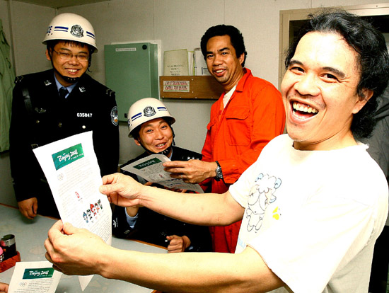 近日,“做奧運使者,創(chuàng)和諧口岸”主題宣傳活動正在上海市金山出入境邊防檢查站開展。金山邊檢站的民警在為中外人員辦理出入境手續(xù)時,充分利用邊檢站的對外窗口職能,向來自世界各地的人員宣傳介紹北京奧運會。