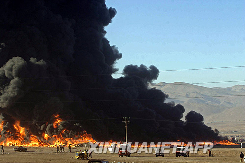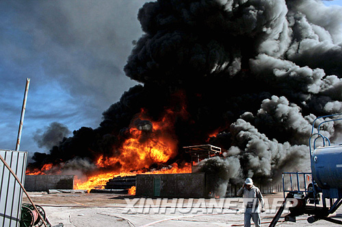 5月20日,消防員在智利北部城市伊基克發(fā)生火災(zāi)的塑料工廠緊急滅火。新華社/法新 | |