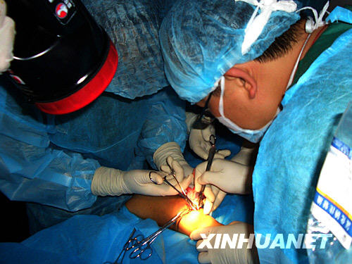 當日下午,地震災(zāi)區(qū)青川縣木魚鎮(zhèn)轉(zhuǎn)來因余震骨折傷員。天津抗震醫(yī)療隊接到傷員后與沈陽軍區(qū)抗震野戰(zhàn)醫(yī)院取得聯(lián)系,立即在野戰(zhàn)醫(yī)院帳篷手術(shù)室打著手電筒為傷員進行骨科手術(shù)。