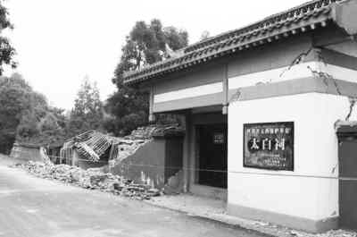 | 傷痕累累的李白故居 | 殘墻、斷壁、破瓦,遍地狼藉,“盛唐詩(shī)酒無(wú)雙士,青蓮文苑第一家”已不復(fù)昔日風(fēng)采。《市場(chǎng)報(bào)》記者24日在四川江油看到,震后的李白故居,圍墻已有2/3損毀,主建筑均存在不同程度損壞。而這僅是災(zāi)區(qū)景區(qū)受損的一個(gè)縮影。四川省旅游局有關(guān)負(fù)責(zé)人表示,地震給當(dāng)?shù)芈糜萎a(chǎn)業(yè)造成巨大傷害,據(jù)估算,目前直接損失已超過500億元。