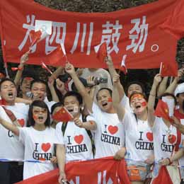 5月23日,群眾沿途為災(zāi)區(qū)人民鼓勁。當日,北京奧運會圣火在上海傳遞。