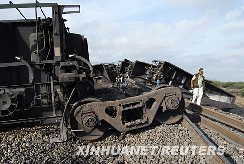 5月27日,哥倫比亞調(diào)查人員在瓜希拉省烏里維亞附近的列車出軌事故現(xiàn)場察看。新華社/路透