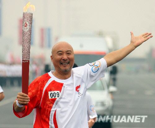 5月27日,火炬手陳佩斯在進行傳遞。當日,北京奧運會圣火在江蘇南京傳遞。