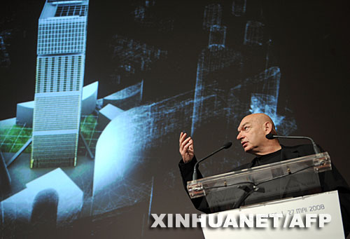 5月27日,在法國(guó)首都巴黎,著名建筑師讓·努韋爾發(fā)表講話(huà),介紹名為“信號(hào)塔”的大樓。