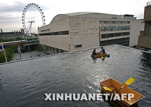 5月27日,在英國倫敦的黑瓦德畫廊,參觀者體驗(yàn)“屋頂泛舟”。