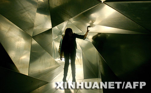 5月27日,在英國倫敦的黑瓦德畫廊,參觀者體驗(yàn)一名日本藝術(shù)家的作品“生命隧道”。