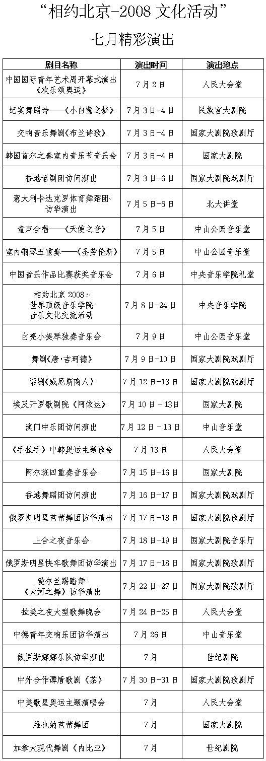 "相約北京-2008文化活動(dòng)"七月精彩演出[圖]