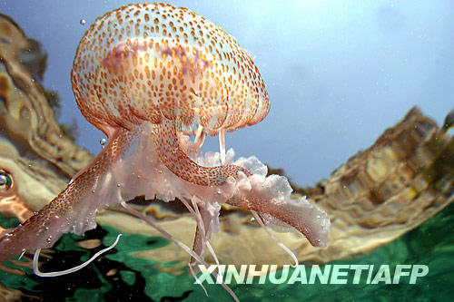 這張2004年6月8日拍攝的照片顯示的是在土耳其凱梅爾附近地中海海域中游弋的一只水母。