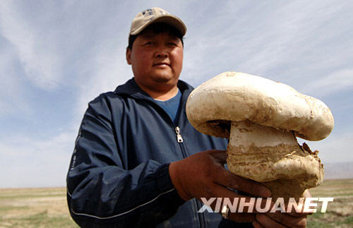 青海省海西蒙古族藏族自治州都蘭縣諾木洪鄉(xiāng)的戈壁灘上,有一處300多平方米的野生蘑菇生長(zhǎng)地,被當(dāng)?shù)厝朔Q(chēng)為蘑菇坡。挖開(kāi)蘑菇坡表面的土層,可見(jiàn)巨型野生蘑菇。據(jù)了解,蘑菇坡的野生蘑菇最大直徑約60厘米,重達(dá)10公斤左右。