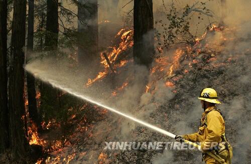 7月6日,在美國加利福尼亞州的大瑟爾,一名消防員奮力滅火。