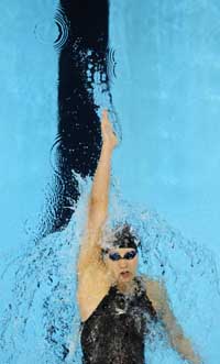 7月4日,美國選手赫爾策在奧馬哈舉行的美國奧運(yùn)游泳選拔賽女子200米仰泳預(yù)賽中,以2分10秒19的成績獲得第三。