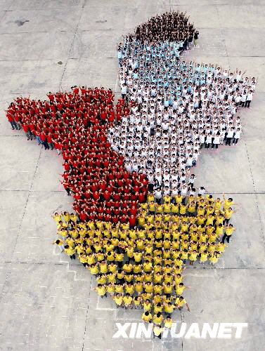 7月14日,寧夏日?qǐng)?bào)報(bào)業(yè)集團(tuán)的千余名新聞工作者在銀川市組成寧夏地圖,以慶祝寧夏回族自治區(qū)成立50周年和寧夏日?qǐng)?bào)創(chuàng)刊50周年,并寓意寧夏日?qǐng)?bào)的新聞工作者50年來(lái)采訪足跡踏遍寧夏山川。