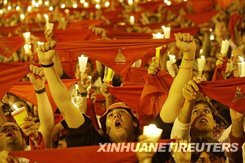 7月15日凌晨,在西班牙北部城市潘普洛納,節(jié)日狂歡者手舉蠟燭和紅絲巾參加圣·費(fèi)爾明節(jié)的閉幕活動(dòng)。新華社/路透 | |