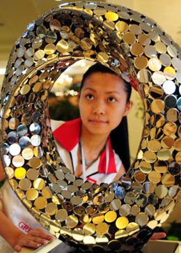 日前,國際奧委會奧林匹克珍藏品中國巡展登陸貴陽。數(shù)百件歷屆奧運珍品及北京奧運會主要場館模型等展品,吸引了眾多市民到場參觀。圖為一名女孩在巡展上觀看一件奧運珍品。