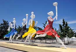 在北京奧林匹克森林公園中心區(qū),80余件雕塑已基本安裝完畢。圖為安放在奧林匹克森林公園中心區(qū)的雕塑作品《圣火傳遞》。