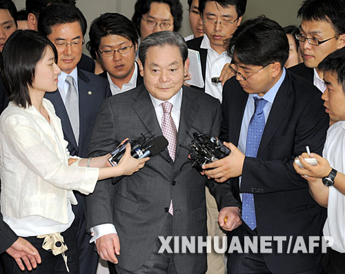 首爾中央地方法院當天以逃稅罪名判處李健熙有期徒刑3年,緩刑5年,并交納1100億韓元罰金(約合1.09億美元)。李健熙于2008年4月22日辭去三星集團董事長職務。 新華社/法新