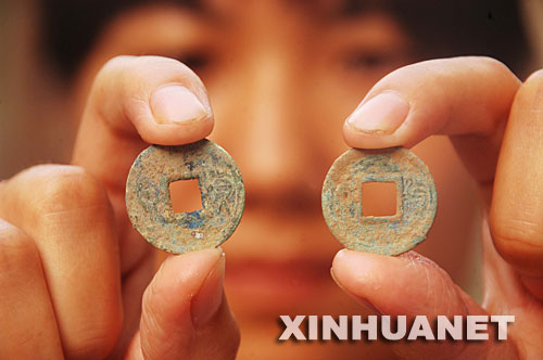 漢代古墓中出土的古錢幣。